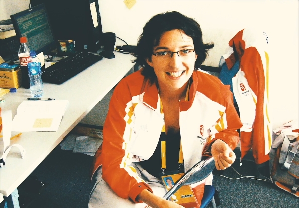 讓蒂擔任2008年北京奧運會的法語翻譯時的照片。