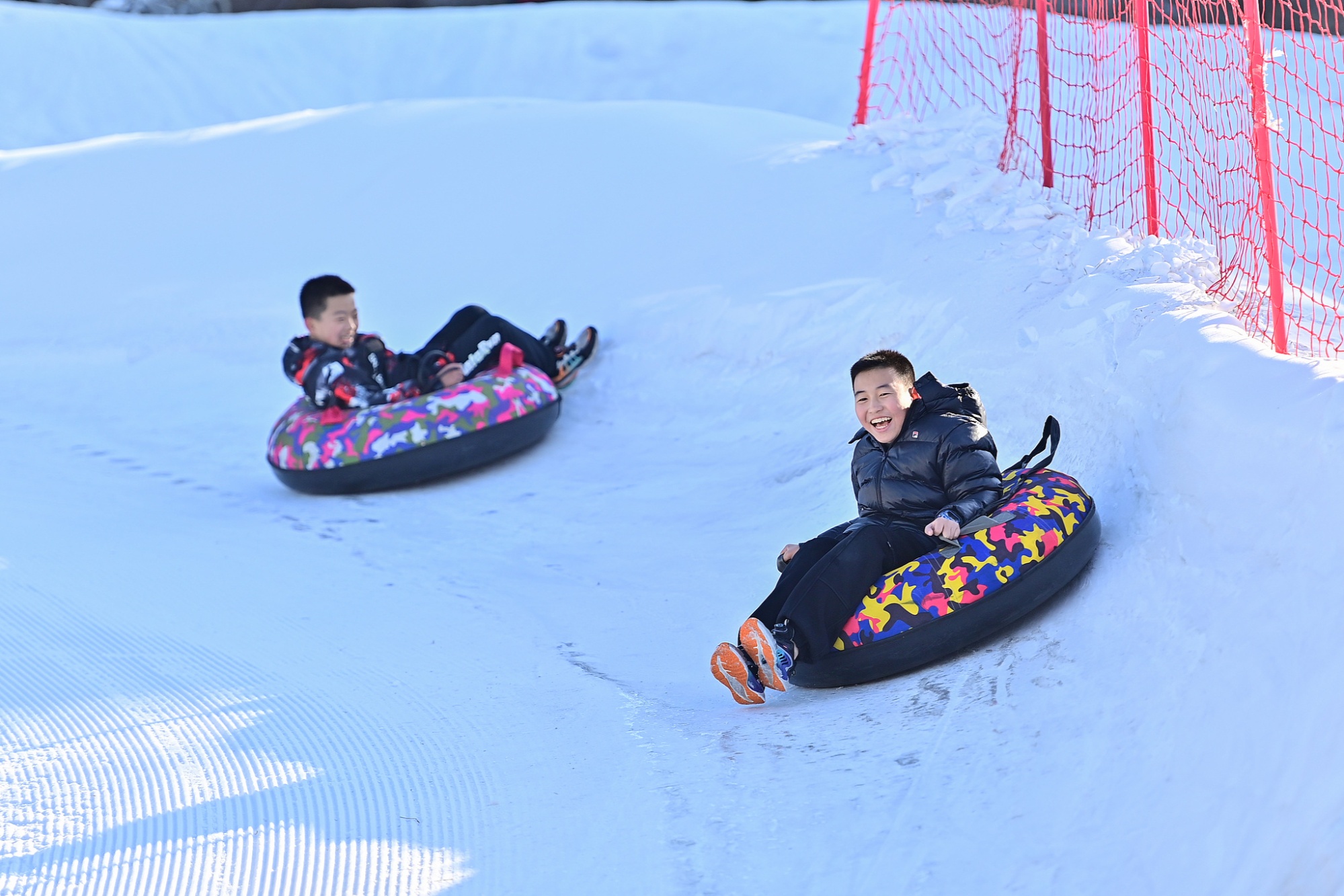 冰雪季帶動(dòng)多地“熱消費(fèi)”,游客在滑雪場(chǎng)體驗(yàn)雪圈項(xiàng)目