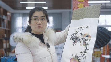 今年全國兩會(huì),魯曼的行李箱里裝了一幅火雞羽毛做的卷軸畫,她計(jì)劃把這幅由村民手工繪制的羽毛畫帶到全國兩會(huì),展示鄉(xiāng)村之美。