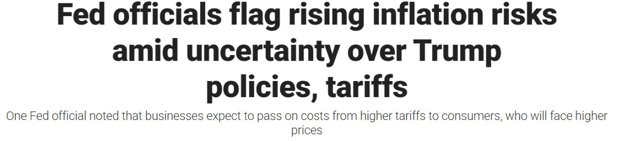 美聯(lián)儲日前公布的1月貨幣政策會議紀要顯示,因擔心特朗普政府的關(guān)稅政策可能成為推高通脹的一大因素,美聯(lián)儲官員一致同意維持現(xiàn)有利率不變。
