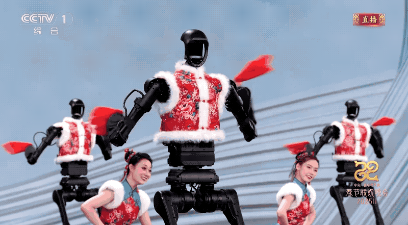 △在2025年總臺央視春晚上,宇樹科技的16個人形機器人與16名舞蹈演員協(xié)同共舞。