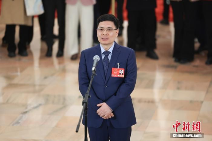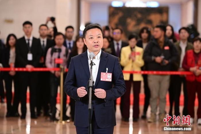 全國人大代表、廣東小鵬汽車科技有限公司董事長何小鵬接受采訪。中新社記者 田雨昊 攝
