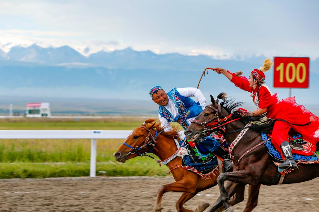 2024年7月10日,新疆代表團運動員在新疆昭蘇參加表演項目競技類“姑娘追”比賽。新華社記者 陳朔 攝