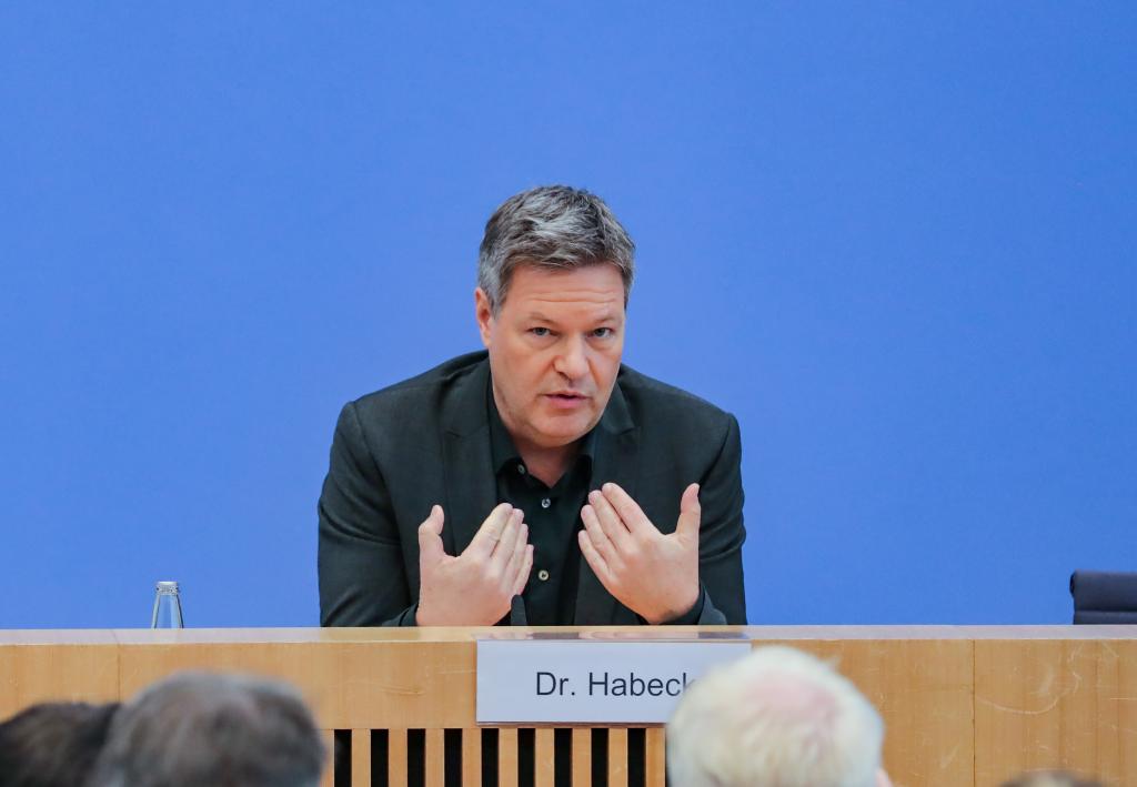 2月24日,在德國柏林,德國副總理兼經(jīng)濟部長哈貝克出席新聞發(fā)布會。新華社記者張帆攝
