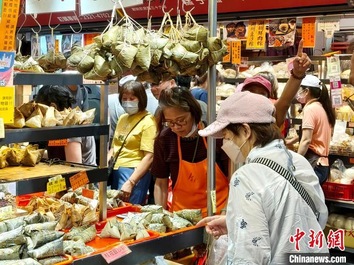 5月30日,臺(tái)灣迎來端午節(jié)連假,各大市場粽香四溢,民眾紛紛前往選購粽子等節(jié)慶美食。圖為臺(tái)北南門市場,民眾排隊(duì)選購粽子。中新社記者 張曉曦 攝