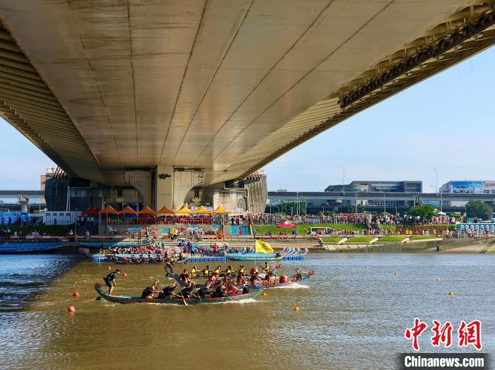 5月30日,臺(tái)灣迎來端午節(jié)連假,全臺(tái)多地舉行龍舟比賽等活動(dòng)。圖為臺(tái)北大佳河濱公園,2025臺(tái)北國際龍舟錦標(biāo)賽首日比賽正在進(jìn)行。中新社記者 張曉曦 攝