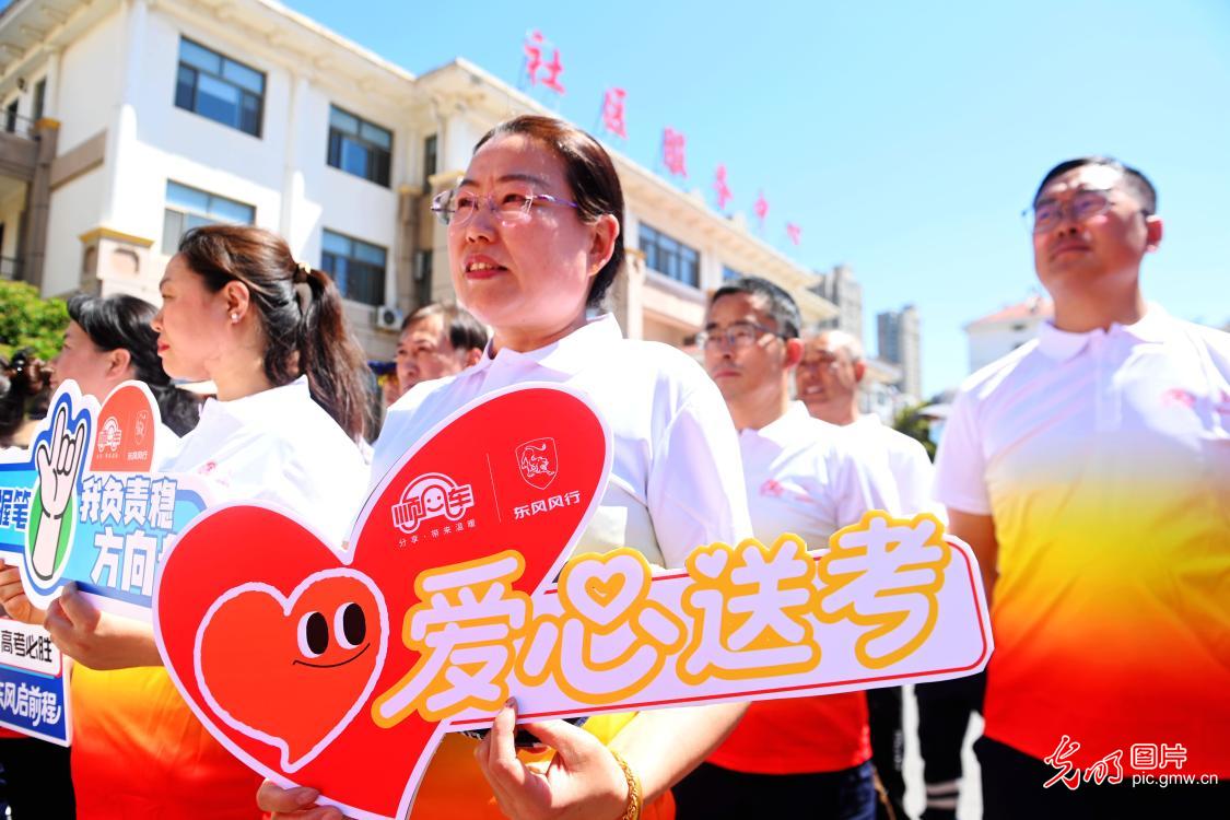 在山東青島銀屏山路社區(qū),由青島公益順風(fēng)車應(yīng)急救援隊(duì)和當(dāng)?shù)亟值馈⑸鐓^(qū)以及愛心企業(yè)發(fā)起的“愛心送考行”活動(dòng)正式啟動(dòng)。自即日起至高考結(jié)束前,義務(wù)為高考考生提供各種應(yīng)急救援服務(wù),確保考生高考無憂。(俞方平攝/光明圖片)
