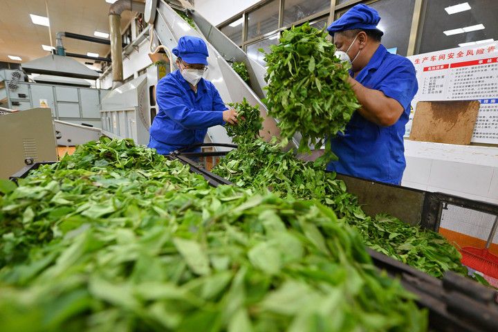 2025年6月7日,工人在海南省農(nóng)墾五指山茶業(yè)集團(tuán)股份有限公司保亭金江五指山分公司茶廠加工茶葉。海南大葉茶是海南省中部山區(qū)特有的茶種,在2024年被證實和發(fā)現(xiàn)是一種新的山茶屬物種。目前,五指山、保亭、白沙等市縣不斷擴(kuò)大種植規(guī)模,將茶產(chǎn)業(yè)作為鞏固脫貧攻堅和推進(jìn)鄉(xiāng)村振興的重要抓手,把綠葉變成百姓致富“黃金葉”。