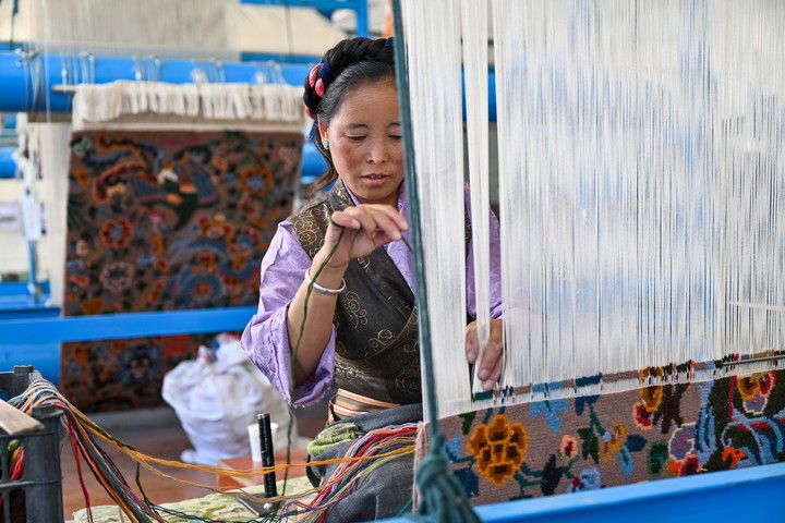 2025年7月18日,江孜藏毯文化發(fā)展有限責(zé)任公司的員工在生產(chǎn)車間內(nèi)編織藏毯。西藏日喀則市江孜縣是著名的藏毯(藏族稱為“卡墊”)之鄉(xiāng),織毯歷史悠久。藏族卡墊織造技藝于2006年被列入國家級非物質(zhì)文化遺產(chǎn)代表性項目名錄。近年來,江孜藏毯在守護(hù)傳統(tǒng)技藝的同時積極創(chuàng)新,通過建立合作社、開辦技能培訓(xùn)班等方式擴(kuò)大靈活就業(yè)規(guī)模,讓更多人在家門口織藏毯增收。