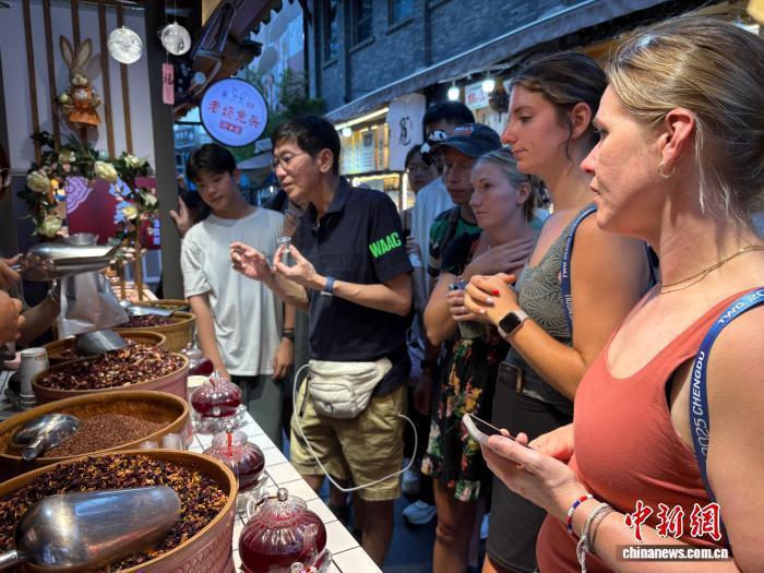"我喜歡這種冰鎮(zhèn)的口感,甜度也剛好,真的很好喝。"艾莉·萊曼還挑選了幾袋果茶,準(zhǔn)備帶回國(guó)和朋友分享。"這里深厚的文化底蘊(yùn)讓我受益匪淺。"在美國(guó)卡爾頓學(xué)院任教的艾莉·萊曼表示,此行來(lái)到中國(guó),讓自己對(duì)來(lái)自中國(guó)的學(xué)生有了進(jìn)一步的了解。"這里有太多新奇的東西了!"艾莉·萊曼還計(jì)劃未來(lái)帶家人到成都探索不一樣的生活。