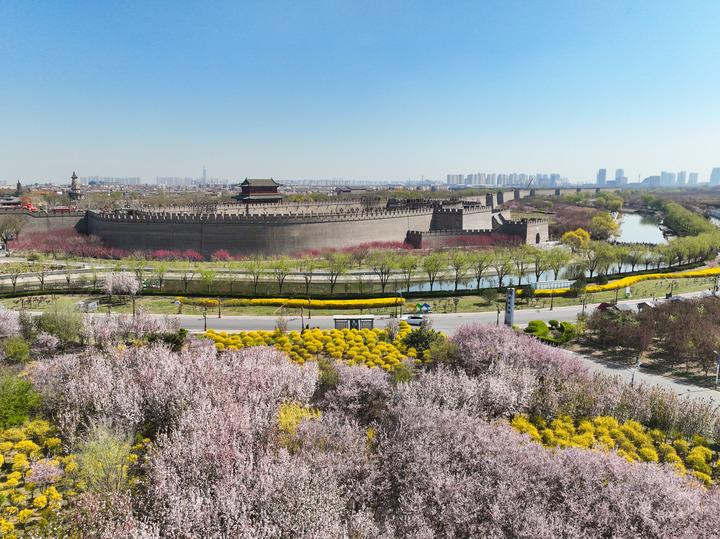 河北省正定古城南城門春色(2025年3月31日攝,無人機(jī)照片)。新華社發(fā)(梁子棟攝)