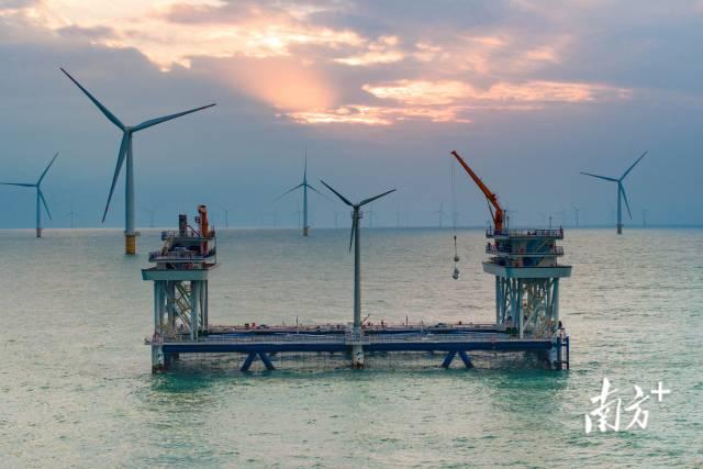 2024年11月25日,廣東汕尾后湖風(fēng)電場(chǎng)海域,運(yùn)行中的"伏羲一號(hào)"。南方+記者 張令 攝