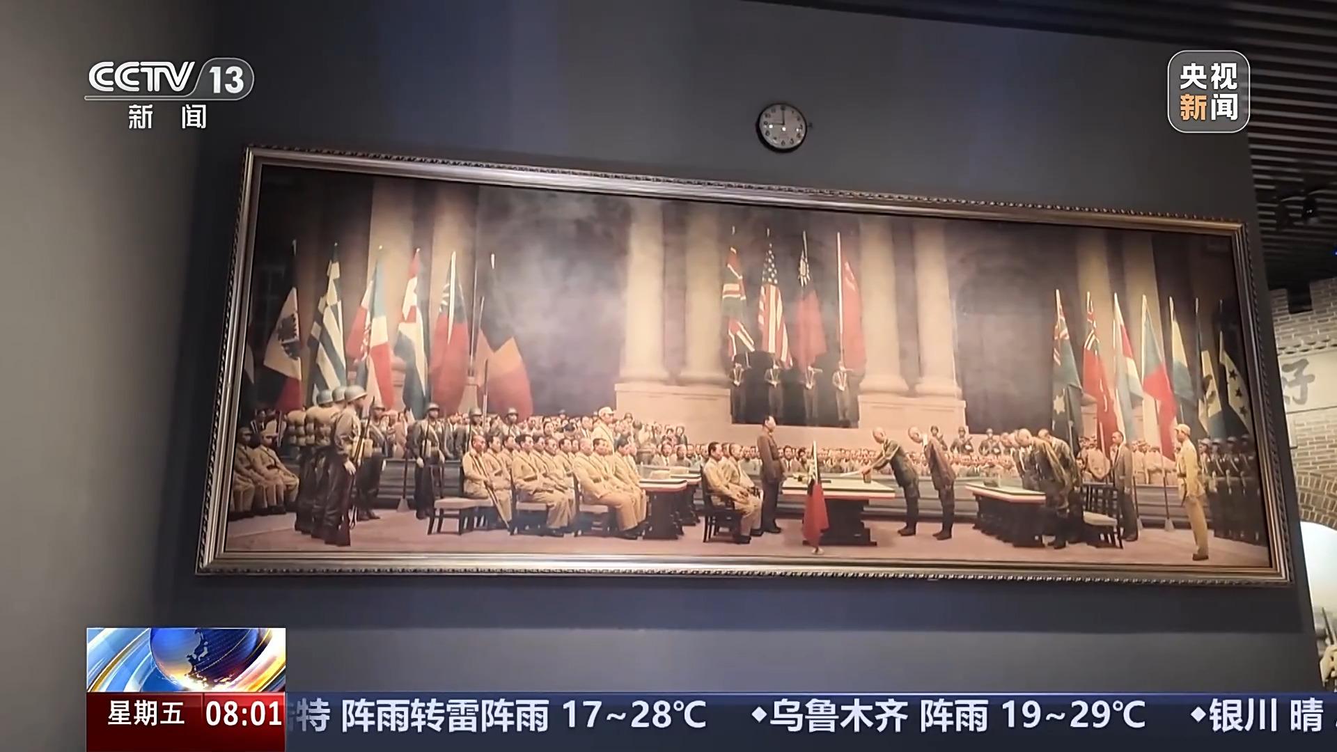 中國(guó)人民抗日戰(zhàn)爭(zhēng)紀(jì)念館展覽陳列部副主任 韓小昆:左側(cè)畫(huà)面有個(gè)角落,有一把空白的椅子是沒(méi)有畫(huà)人物的。整個(gè)作品形象里面有200多個(gè)人,但唯獨(dú)空了一把椅子。這是基于歷史進(jìn)行的藝術(shù)創(chuàng)作,就是說(shuō),在戰(zhàn)爭(zhēng)中犧牲的英烈們也參加了這個(gè)受降儀式。