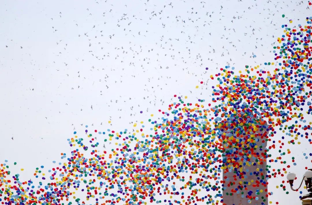 2015年9月3日,中國人民抗日戰(zhàn)爭暨世界反法西斯戰(zhàn)爭勝利70周年紀(jì)念大會(huì)在北京隆重舉行。這是紀(jì)念大會(huì)現(xiàn)場放飛氣球和白鴿。新華社記者 張加揚(yáng) 攝