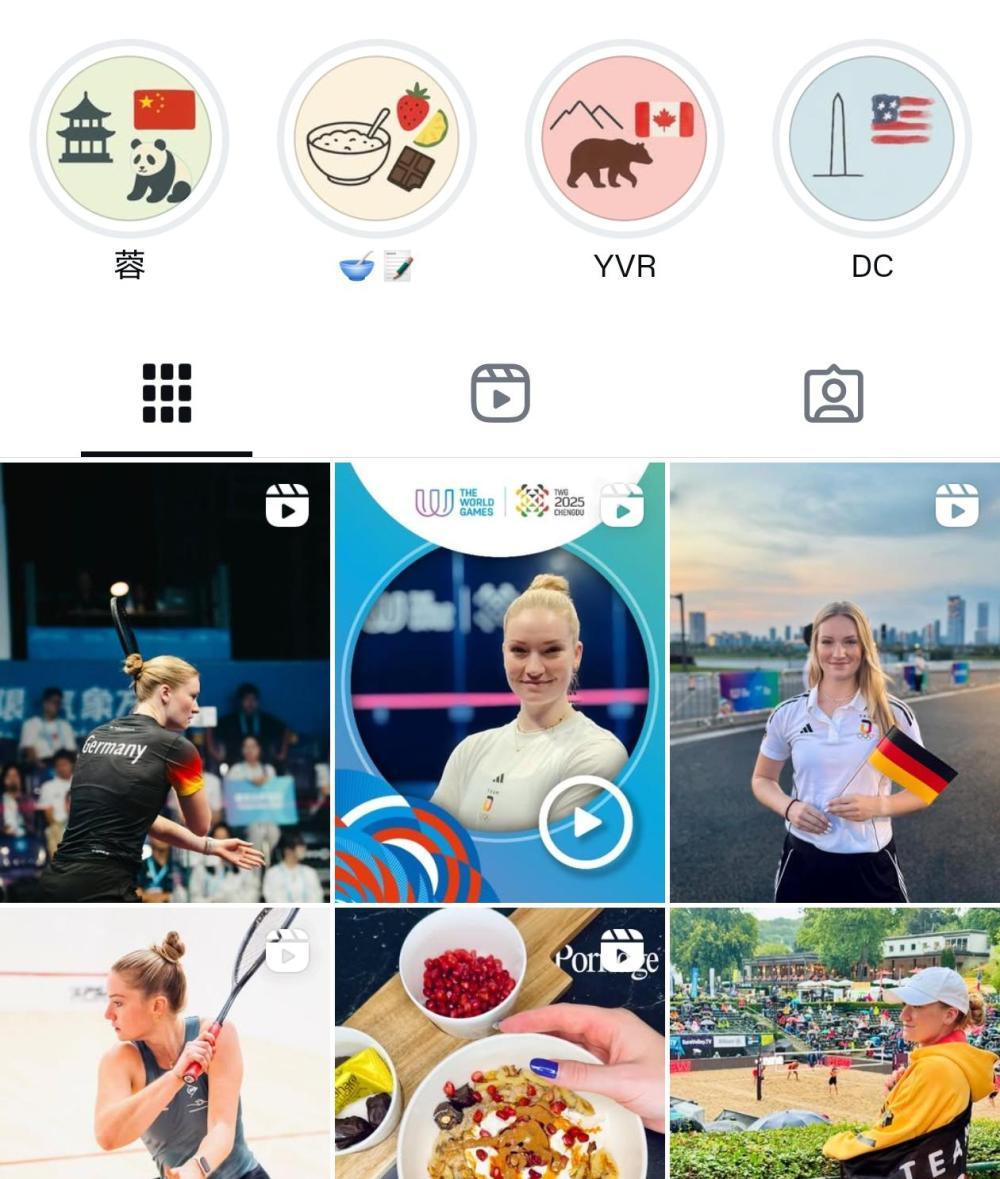 為了記錄在成都的美好體驗,德國壁球運動員薩斯基婭在社交媒體上新建了一個照片合集,名字便是漢字"蓉"。愛沙尼亞隊飛盤選手萊特盼望著,早日回到這里。