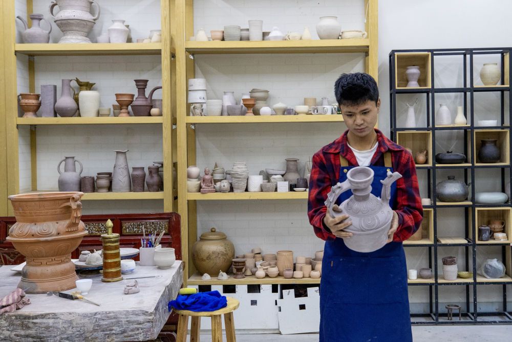 ↑ 8月6日,一名制陶師在制作陶器。藏族傳統(tǒng)泥陶雕塑制作技藝入選西藏自治區(qū)級(jí)非物質(zhì)文化遺產(chǎn)代表性項(xiàng)目名錄。