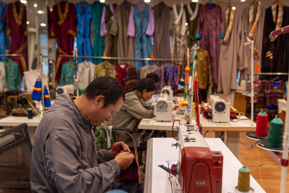 ↑ 8月6日,服裝師在制作拉薩服飾。拉薩服飾入選西藏自治區(qū)級(jí)非物質(zhì)文化遺產(chǎn)代表性項(xiàng)目名錄。