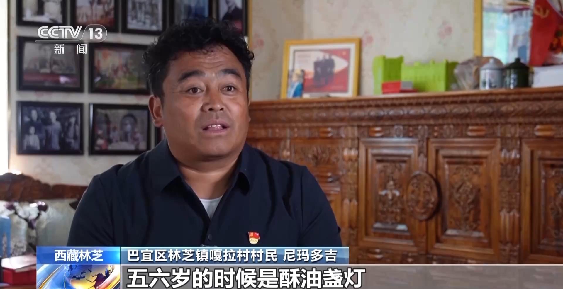 西藏林芝市巴宜區(qū)林芝鎮(zhèn)嘎拉村村民 尼瑪多吉:過去沒有什么旅游收入,步道都是泥巴路,五六歲的時候用的是酥油盞燈。現(xiàn)在不分白天和晚上,跟白天一樣都有光,嘎拉村的步道干凈整潔。要說這些變化,一天一夜也說不完。