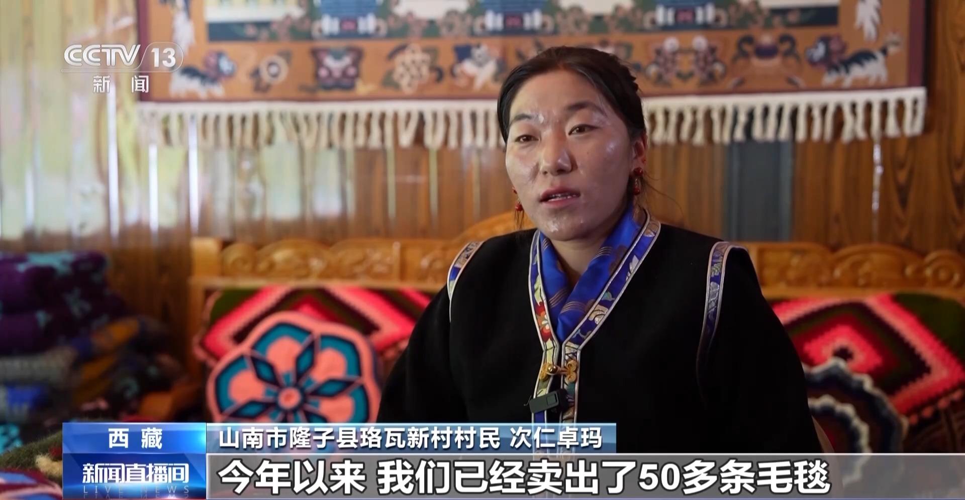 山南市隆子縣珞瓦新村村民 次仁卓瑪:今年以來,我們已經(jīng)賣出了50多條毛毯,100多個靠枕,其中一半是通過網(wǎng)絡(luò)直播賣出的。接下來我想把這門手藝教給村里更多的人,大家一起把致富之路越走越寬。