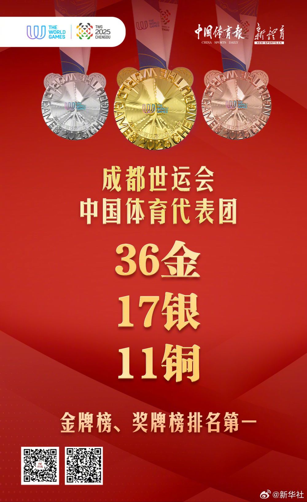 收官!成都世運(yùn)會(huì)中國36金17銀11銅