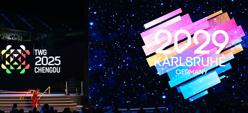 成都世運(yùn)會(huì)組委會(huì)主席施小琳、國際世界運(yùn)動(dòng)會(huì)協(xié)會(huì)主席何塞·佩魯雷納先后致辭,向?yàn)楸緦檬肋\(yùn)會(huì)圓滿成功作出貢獻(xiàn)的所有人員表示感謝。下屆世運(yùn)會(huì)舉辦城市德國卡爾斯魯厄市市長弗蘭克·門特魯普致辭,熱情邀請(qǐng)全球賓客四年后相聚卡爾斯魯厄。