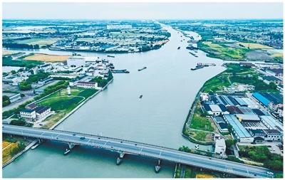 太浦河,是太湖流域最大的人工河道之一,河旁的汾湖灣村、新池村、湖濱村3個村落分別屬于江蘇蘇州吳江區(qū)、上海青浦區(qū)和浙江嘉興嘉善縣,雞犬相聞,水系交匯。站在河畔,只見清清的河水向東流,鳥兒歡飛,綠道延綿。