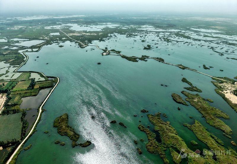 俯瞰塔克拉瑪干沙漠邊緣的拉里昆國(guó)家濕地公園(8月6日無人機(jī)攝)。天山網(wǎng)-新疆日?qǐng)?bào)記者 鄒懿 攝