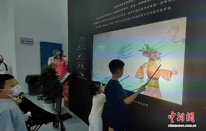 8月15日,2025“新疆是個(gè)好地方”非遺援疆主題展示活動(dòng)在新疆和田約特干故城開(kāi)幕。圖為孩子們?cè)诂F(xiàn)場(chǎng)體驗(yàn)“龍宮戲影——數(shù)字皮影戲觸控互動(dòng)體驗(yàn)”裝置。 中新社記者 應(yīng)妮 攝