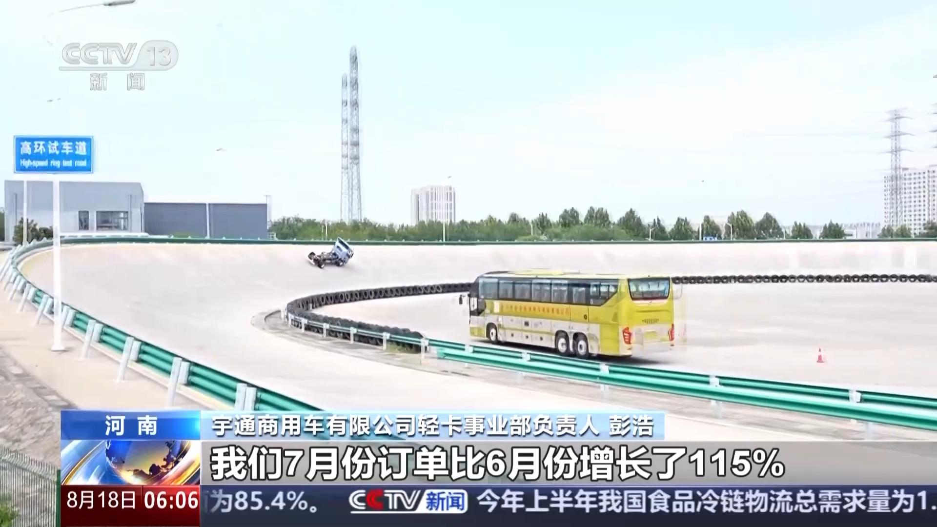 宇通商用車有限公司輕卡事業(yè)部負責人 彭浩:新能源冷藏車市場這一塊,因為國家新能源汽車補貼的政策刺激,我們7月份訂單比6月份增長了115%,同比翻了兩倍,可以說是產(chǎn)銷兩旺。