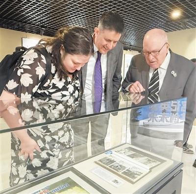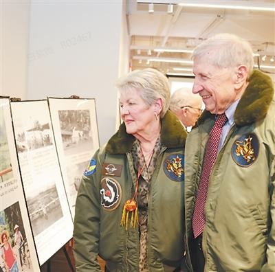 7月8日,美國(guó)參觀者在上海黃浦文化中心觀看“銘記英雄 共創(chuàng)未來(lái)”飛虎隊(duì)主題歷史圖片展中的實(shí)物展品。