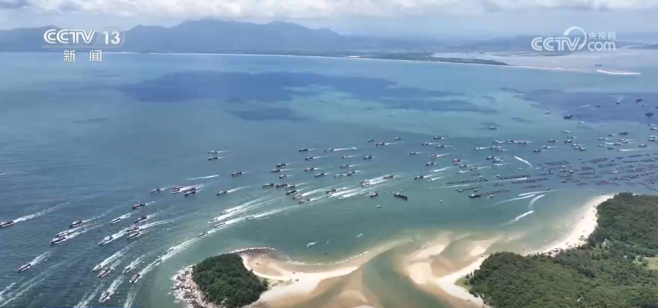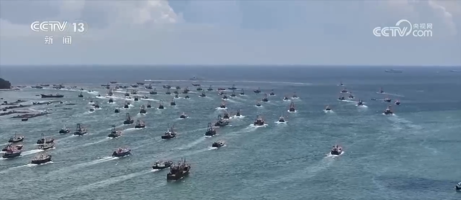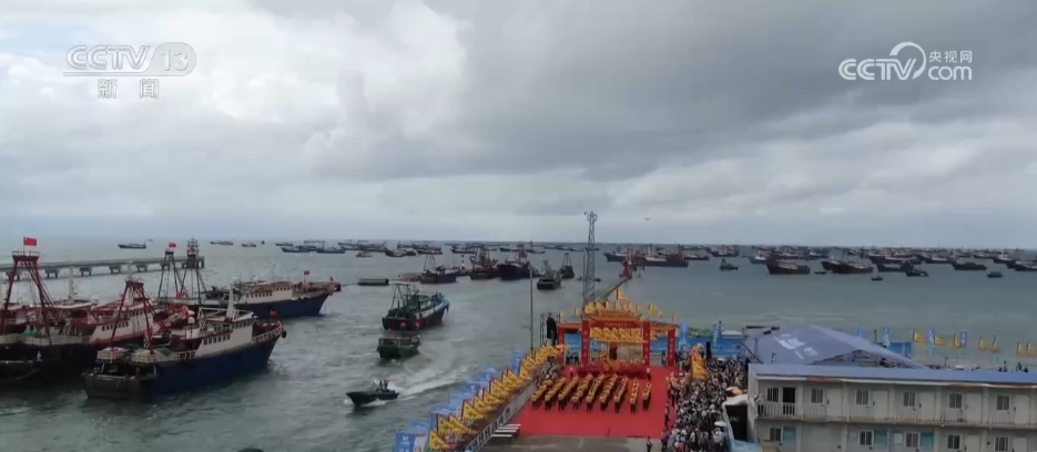 在廣東陽江,中午12時,隨著開漁令發(fā)布,3400多艘漁船開足馬力、破浪出征,有序駛向南海漁場。
