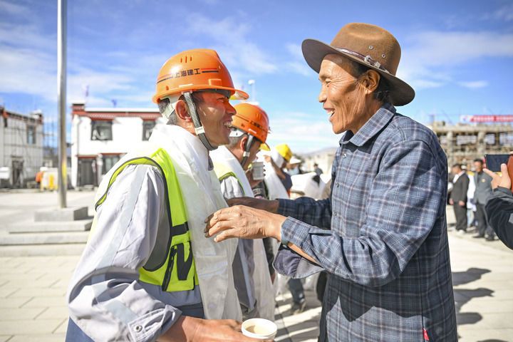從黃浦江畔到雅魯藏布江岸,上海市與西藏自治區(qū)雖相隔萬水千山,卻因?qū)谠ńY(jié)下深厚情誼。在平均海拔4000米左右的日喀則市,上海援藏干部用智慧與汗水澆灌著民族團(tuán)結(jié)的幸福之花,書寫著動人的民生答卷。 正值上海第十批與第十一批援藏干部輪換之際,記者走訪了上海對口支援的日喀則市多個村,與當(dāng)?shù)馗刹咳罕姇沉纳钌系淖兓?記錄滬藏對口支援工作成效。 7月1日,在日喀則市定日縣森嘎村“感恩廣場”,村民向援建者獻(xiàn)哈達(dá)。本組圖片均為新華每日電訊記者陳浩明攝 震后新居“很大、很亮、很干凈” 今年1月7日,西藏日喀則市定日縣突發(fā)6.8級強震。在海拔4300米的長所鄉(xiāng),擁有600多人的森嘎村成為該鄉(xiāng)受災(zāi)規(guī)模最大的村落——十余人遇難,126戶民房受損嚴(yán)重,不得不面對繁重的重建工作。 作為對口援建城市的上海,主動包干了森嘎村的重建。地震發(fā)生時,元旦剛剛返滬的上海援藏定日小組正在休假階段,得知地震發(fā)生,大家迅速響應(yīng),第一時間返回定日?!翱吹教姆课?、傷亡的家庭,我們心里真的很難受?!鄙虾T囟ㄈ招〗M副組長朱冬鋒眼含淚水回憶說,“我們當(dāng)時心里有一個強烈的愿望——幫他們重建家園?!?/p> 3月11日,森嘎村重建項目正式啟動,總建筑面積約為1.76萬平方米。項目團(tuán)隊面臨著雙重挑戰(zhàn):既要把房子建得結(jié)實,又要讓村民住得舒心。 “地震前村內(nèi)房屋間距過窄,有些巷道連電動三輪車都難以通行,不少村民正是在狹窄道路上被倒塌房屋所傷。”森嘎村黨支部書記巴桑道出了村民的樸素愿望——更寬的房屋間距、更優(yōu)的建筑質(zhì)量、更完善的公共空間。 綜合考慮實際情況和村民需求,項目團(tuán)隊規(guī)劃建設(shè)126棟符合當(dāng)?shù)厣盍?xí)慣的民房,同步配套設(shè)立村史館、廣場等公共活動場所,并著重優(yōu)化了建筑間距和整體布局。 這是7月1日在定日縣森嘎村“感恩廣場”拍攝的“七一”活動現(xiàn)場。 在“七一”這個特別的日子里,村民們陸續(xù)來到新建成的“感恩廣場”,用最樸實的方式向新家園的建設(shè)者們表達(dá)淳樸的謝意。 機器的轟鳴聲與悠揚的藏民族歌曲交織在一起,村民們依次向援建者獻(xiàn)上潔白的哈達(dá)、斟滿飄香的酥油茶,還有村民用大拇指蘸著白色的糌粑在他們身上點個指印,宛如一個個真誠的“點贊”,場景溫暖感人。 “今天村里組織了一部分村民來向援建者表示感謝,我和我的很多長輩就自發(fā)跟過來了?!?3歲的小女孩巴桑普赤雙手拎著裝滿酥油茶的暖瓶,靦腆地告訴記者,地震后,她一家六口和其他村民都暫時居住在不遠(yuǎn)處的安置點,大家都在期盼著早日搬進(jìn)新家。 “房子很大、很亮、很干凈?!痹趨⒂^完即將竣工的新居時,村民們不由得喜上眉梢。68歲的羅布激動地說:“所有參與我們家園重建的人,你們辛苦了!” 這是7月2日拍攝的拉孜縣“吉角美麗宜居村”大門。 搬低800米,全村走上致富路 沿著318國道驅(qū)車前往拉孜縣的楊浦路,就來到了2023年11月新建成的“吉角美麗宜居村”。這是上海援藏拉孜小組在過去三年中推進(jìn)的重點項目——吉角村易地搬遷。 拉孜縣吉角村距縣城30公里,海拔近4900米,是全縣海拔最高的村莊,全村共37戶143人。上海援藏拉孜小組組長宮愛如介紹:“吉角村海拔高、條件苦、生活難——基礎(chǔ)設(shè)施不完善,年平均氣溫低于零攝氏度,村民健康普遍受到影響,冬季用水、用電存在困難,不適宜居住?!?/p> “我們的村民普遍都患有膝關(guān)節(jié)炎,因為距離縣城太遠(yuǎn),平時買藥、看病都很不方便。”吉角村黨支部書記格桑加措回憶,放牧和外出務(wù)工成為村民的主要收入來源,“但是放牧收入并不高,大部分村民都靠熟人介紹到阿里地區(qū)打工”。 為了改善吉角村人居環(huán)境,讓老百姓告別“高、苦、難”的生活,“搬村子”成了拉孜小組來到當(dāng)?shù)睾蟮氖讉€重要任務(wù),他們與當(dāng)?shù)卣M(jìn)行聯(lián)合調(diào)研后,圍繞“搬得出、穩(wěn)得住、能致富”三大目標(biāo),系統(tǒng)謀劃吉角村的易地搬遷工作。 “在我們與村民一次次的溝通中發(fā)現(xiàn),‘如何搬得出’并非難題,村民對改善生活的渴望遠(yuǎn)比我們想象的更迫切。”宮愛如說,搬遷成功的關(guān)鍵在于確保村民留得住,避免出現(xiàn)反遷現(xiàn)象。 一是宜居、二是宜業(yè),這便是成功的秘訣。新吉角村位于拉孜縣城的核心區(qū)域,海拔降低了800米,而且生活、工作、就醫(yī)、上學(xué)都很方便。 格桑加措笑著說:“村民把牲畜都入在合作社里,每年都有固定的分紅和補貼?!痹趯h城的生活熟悉之后,很多村民都選擇在家門口打工,有的在附近當(dāng)建筑工、有的在小區(qū)物業(yè)工作,還有村民當(dāng)起了老板,“開餐館、包工程項目的都有”。 從牧區(qū)到社區(qū)的轉(zhuǎn)變,還不止于此。拉孜小組還創(chuàng)新性地將“人民城市人民建、人民城市為人民”的理念應(yīng)用到搬遷工作中。宮愛如介紹,從項目建設(shè)到管理運營,充分發(fā)揮了當(dāng)?shù)卣?、村委會、群眾的作?讓百姓發(fā)表意見,完全尊重民意,同時試點開展了“村委、業(yè)委、物業(yè)——三駕馬車”的社會治理試點工作。 拉孜小組還在吉角村推行智