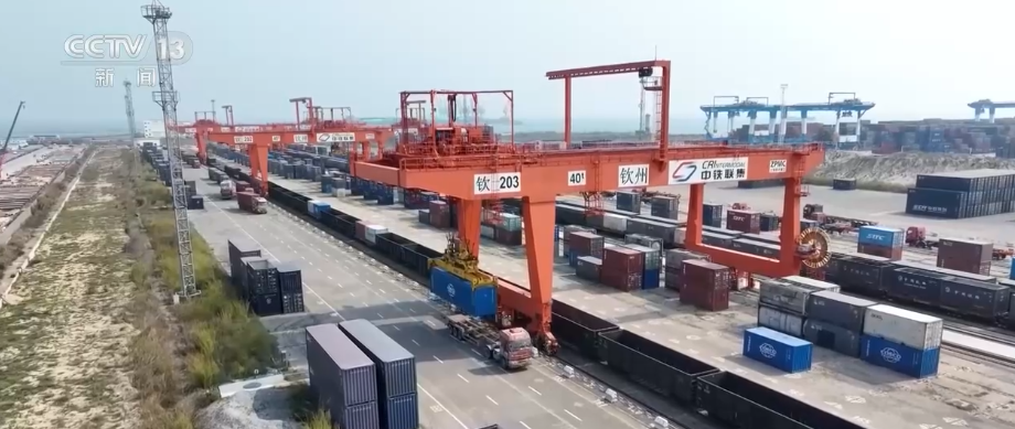 同時(shí),鐵路與航運(yùn)企業(yè)合作持續(xù)深化,鐵路95306平臺(tái)上線60條多式聯(lián)運(yùn)“一單制”產(chǎn)品線路。上半年,來自重慶的新能源汽車,以“鐵路籠車+滾裝船”的模式分批運(yùn)抵欽州港,高效中轉(zhuǎn)助力新能源汽車加速“出?!?。