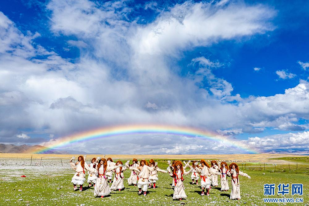 措勤縣藝術(shù)團(tuán)在表演自治區(qū)級非物質(zhì)文化遺產(chǎn)磁石“帕”卓(6月23日攝)。該舞蹈動作優(yōu)美歡快、充滿動感,帶有彈性舞步。近年來,措勤縣將磁石“帕”卓改編為課間操進(jìn)校園,讓學(xué)生感受當(dāng)?shù)胤沁z魅力。新華網(wǎng) 旦增努布 攝