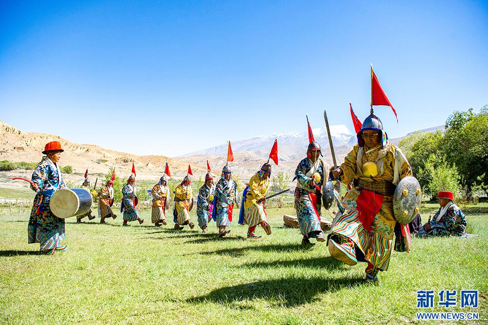 普蘭縣西德村村民在表演“果爾孜舞”(6月10日攝)。“果爾孜舞”有1300多年的歷史,傳承沿襲傳統(tǒng)的口口相傳。2011年,被列入國家級非物質(zhì)文化遺產(chǎn)名錄。新華網(wǎng) 旦增努布 攝