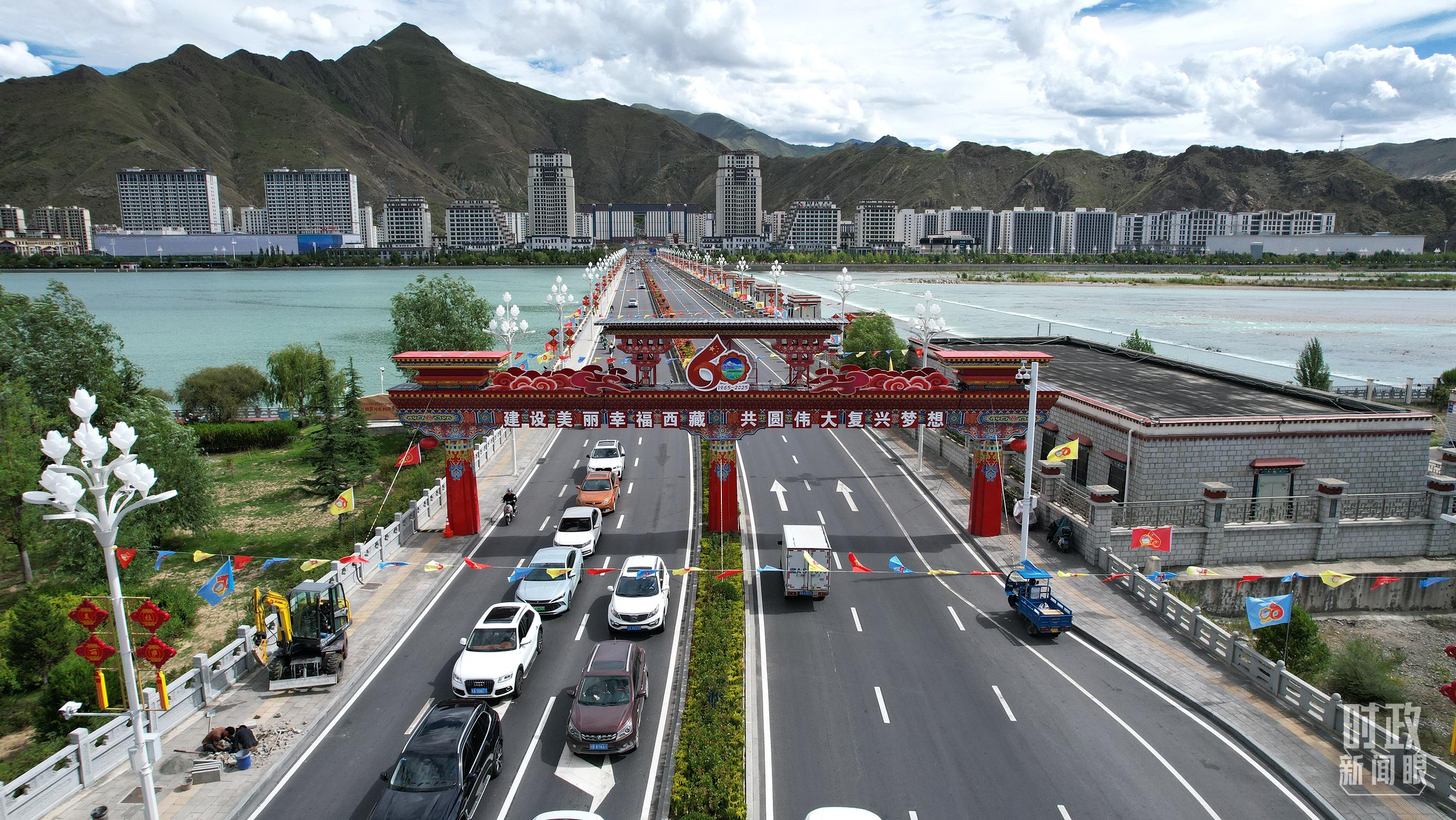充滿節(jié)日氛圍的古城拉薩,從機(jī)場到住地主要街道兩旁彩旗舞動,各族群眾手持紅旗、捧著哈達(dá),齊聲歡呼。