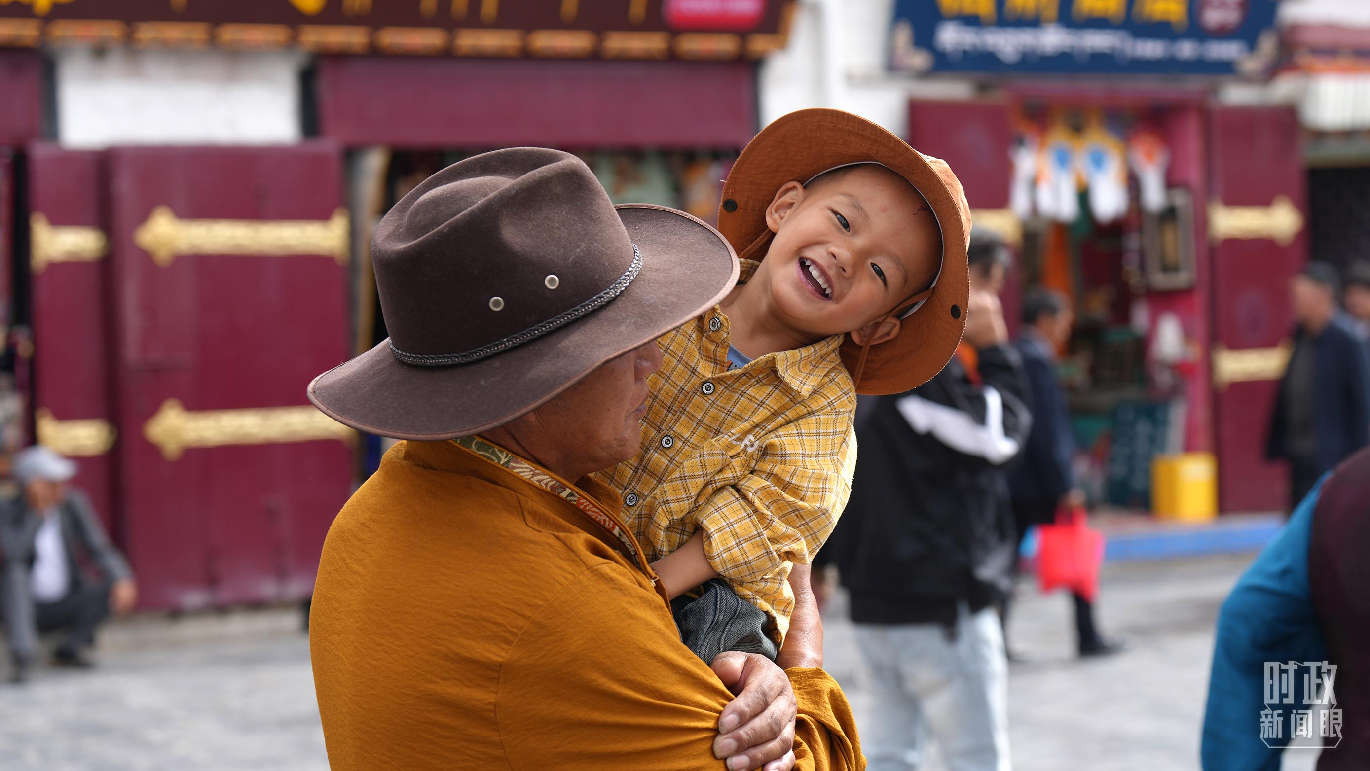 △拉薩八廓街上的溫馨一幕。(總臺記者李晉拍攝)