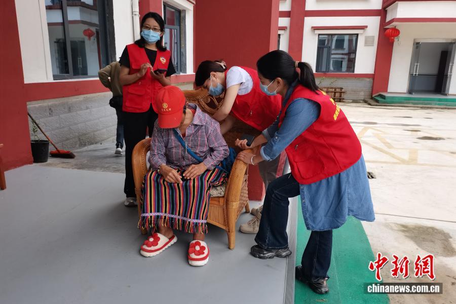 2025年5月23日,墨脫縣政協(xié)辦黨支部黨員干部與政協(xié)委員代表前往墨脫縣一家養(yǎng)老院開展活動(dòng)。圖為黃小芳(右二)為行動(dòng)不便老人按摩捶背。受訪者供圖