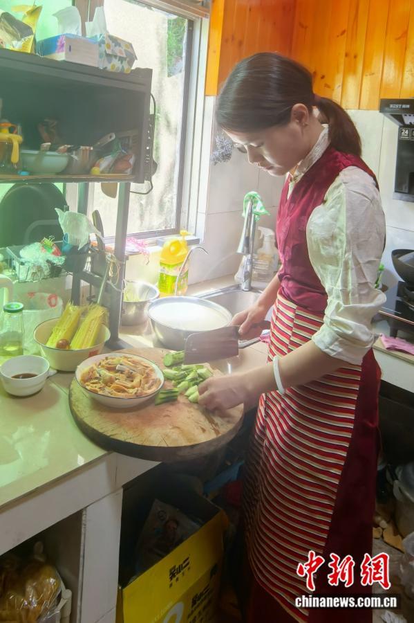 這種交融,也悄然浸潤著兩個(gè)女兒的成長。家里的餐桌永遠(yuǎn)擺著酥油茶和豆?jié){,藏裝與漢服常一起晾在陽臺(tái)。藏歷新年,丈夫教女兒插青稞穗;春節(jié),她帶女兒貼春聯(lián)。幼兒園讓畫“最喜歡的場景”時(shí),大女兒畫了一群不同民族的孩子圍著石榴樹拉手笑:“這是墨脫,我們都是一家人,像石榴籽一樣!”