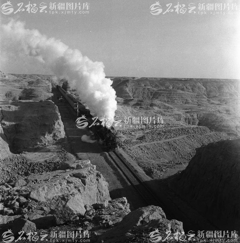 新疆圖片庫里,有一張1962年的老照片:一輛蒸汽機車噴著濃濃的白煙,拉著裝滿煤炭的一列火車在百里風區(qū)呼嘯而過。這場景,曾無數(shù)次出現(xiàn)在新疆鐵路的歷史中。
