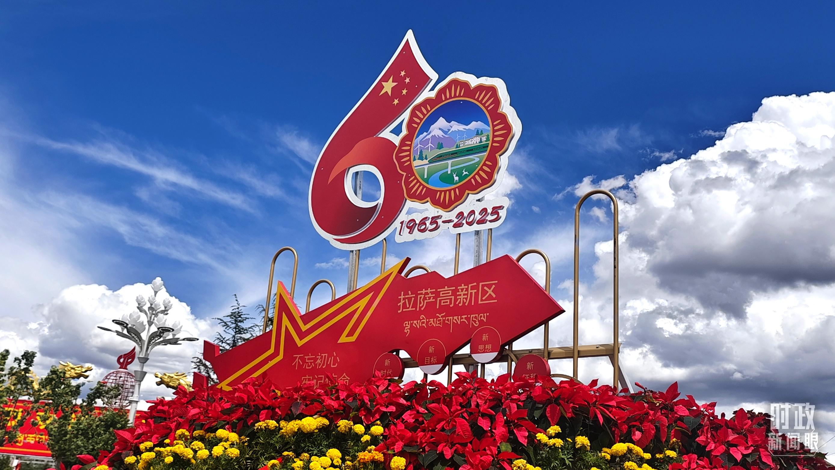 △西藏自治區(qū)成立60周年標(biāo)識。(總臺央視記者韓銳拍攝)