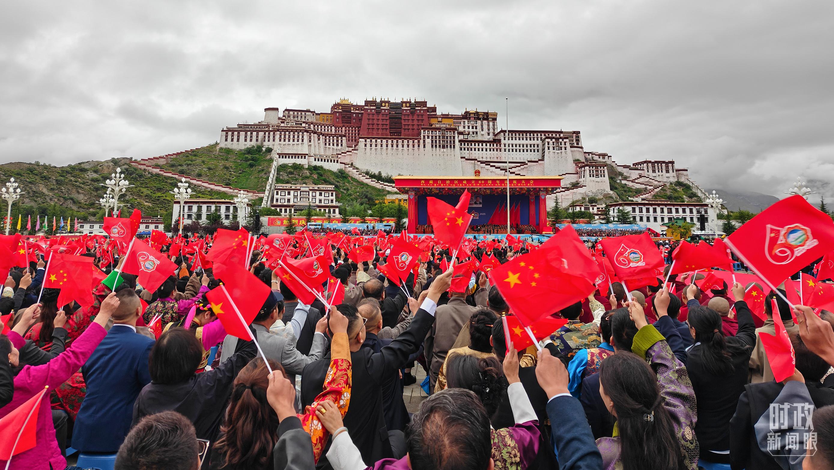 △西藏自治區(qū)成立60周年慶祝大會在拉薩布達(dá)拉宮廣場隆重舉行。(總臺央視記者趙化拍攝)