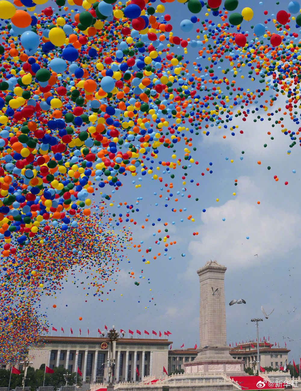 和平鴿展翅高飛,彩色氣球騰空而起!回望崢嶸的血火歲月,讓我們以山河為證、以日月為銘,共同見證,英雄的中國人民永遠(yuǎn)不屈,和平的陽光永遠(yuǎn)燦爛!讓我們?yōu)閯倮炔蕿樽鎳c(diǎn)贊!(記者:張宏祥、費(fèi)茂華、江文耀、周荻瀟、牟宇)
