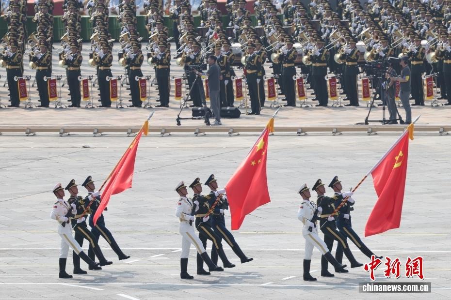 圖為中國(guó)人民解放軍儀仗方隊(duì)接受檢閱。中新社記者 盛佳鵬 攝