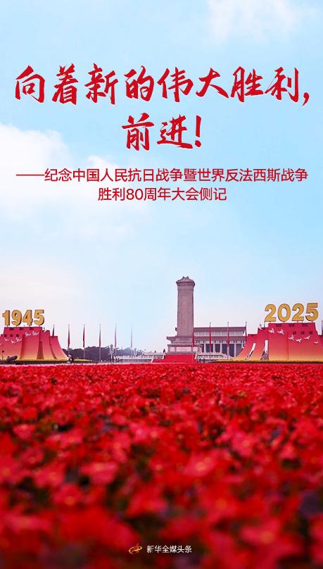 2025年9月3日,時間的指針標注新的歷史刻度—— 中國人民抗日戰(zhàn)爭暨世界反法西斯戰(zhàn)爭勝利80周年紀念活動隆重舉行。這是全世界一切愛好和平的國家和人民的莊重典禮。 各界代表和群眾匯聚北京天安門廣場隆重集會,黨和國家舉行盛大閱兵儀式,共同銘記歷史、緬懷先烈、珍愛和平、開創(chuàng)未來。 1931—1945,中國人民經過艱苦卓絕的浴血奮戰(zhàn),取得近代以來反抗外敵入侵的第一次完全勝利。 1945—2025,偉大抗戰(zhàn)精神激勵中國人民克服一切艱難險阻,中華民族迎來了從站起來、富起來到強起來的偉大飛躍,中國式現(xiàn)代化呈現(xiàn)出無比光明燦爛的前景。 歷史記憶永不褪色,時代潮流浩蕩向前。 習近平總書記莊嚴宣示:“中華民族偉大復興勢不可擋!人類和平與發(fā)展的崇高事業(yè)必將勝利!” (一) 初秋的北京,天高地闊。 修葺一新的天安門城樓大殿內,懸掛著一幅題為《眾志成城》的巨幅畫作:層林盡染、萬山紅遍間,長城如一條巨龍蜿蜒盤旋。 大殿外,天安門廣場兩側80面紅旗迎風招展,巍峨矗立的人民英雄紀念碑前,14座烽燧托舉起“1945”“2025”年號。廣場觀禮臺以城墻紅、橄欖綠、豐饒金為三主色,形似三個巨大“人”字,組成“眾”字造型。 8時35分,中共中央總書記、國家主席、中央軍委主席習近平登上天安門城樓,同抗戰(zhàn)老戰(zhàn)士申秉宸、張坪、劉世鉞、傅英、羅競輝、宋其祥一一握手,向他們表示崇高敬意。 這次紀念大會,邀請了參加過抗戰(zhàn)的老戰(zhàn)士、老同志、老民兵、地方支前模范代表和抗戰(zhàn)烈士親屬代表到現(xiàn)場觀禮。 觀禮臺上,97歲的抗戰(zhàn)老戰(zhàn)士齊英胸前勛章閃耀:“12歲我加入了八路軍,1949年在開國大典現(xiàn)場見證了新中國的成立,今天再次感受祖國的強大。犧牲了的戰(zhàn)友們,血沒有白流?!?/p> “我的家在東北松花江上,那里有我的同胞”“敵人從哪里進攻,我們就要他在哪里滅亡”“保衛(wèi)家鄉(xiāng),保衛(wèi)黃河,保衛(wèi)華北,保衛(wèi)全中國”“沒有共產黨,就沒有新中國”…… 千余人組成的聯(lián)合軍樂團奏響熟悉的旋律,合唱團嘹亮的歌聲如同雄渾史詩,講述那段壯懷激烈、前赴后繼的烽火歲月。紀念大會現(xiàn)場的人群情不自禁地合唱,激發(fā)起海內外中華兒女的情感共鳴。 穿越革命和建設的洪流,激蕩改革與發(fā)展的風云,中國共產黨領導中國人民一路乘風破浪,中國道路更加寬廣,中國力量不可阻擋。 “波瀾壯闊的抗日戰(zhàn)爭,孕育偉大的抗戰(zhàn)精神。這是中國人民彌足珍貴的精神財富,將永遠激勵我們克服艱難險阻、一路向前?!敝袊皆鹿こ炭傇O計師、中國工程院院士吳偉仁說。 此時此刻,東長安街上,鐵甲生輝、重器列陣,人民軍隊以嚴整的軍容、雄壯的氣勢、昂揚的精神,等待黨和人民的檢閱。 大江南北、長城內外,從白山黑水到南海之濱,從江南水鄉(xiāng)到大漠戈壁,現(xiàn)場畫面和聲音隨著直播信號傳遍中國大地。 8時55分,習近平總書記等黨和國家領導人及應邀觀禮的國際政要來到天安門城樓主席臺,全場爆發(fā)出熱烈掌聲。 (二) 9時整,紀念中國人民抗日戰(zhàn)爭暨世界反法西斯戰(zhàn)爭勝利80周年大會開始。 80響禮炮震徹云霄,國旗護衛(wèi)隊以堅定有力的步伐,從人民英雄紀念碑行進至升旗區(qū)。 80年,從偉大勝利走向偉大復興。這是民族獨立、人民解放的路,是國家富強、人民幸福的路,是和平發(fā)展、命運與共的路。 “起來!不愿做奴隸的人們!把我們的血肉,筑成我們新的長城……” 全場齊聲高唱《義勇軍進行曲》,五星紅旗冉冉升起。 9時08分,習近平總書記在天安門城樓發(fā)表重要講話—— “我代表中共中央、全國人大、國務院、全國政協(xié)、中央軍委,向全國參加過抗日戰(zhàn)爭的老戰(zhàn)士、老同志、愛國人士和抗日將領,向為中國人民抗日戰(zhàn)爭勝利作出重大貢獻的海內外中華兒女,致以崇高敬意!” 這是黨和國家對歷史的銘記、對英雄的禮贊。 從平型關大捷的痛擊日寇,到百團大戰(zhàn)的振奮人心;從淞滬會戰(zhàn)的“血肉磨坊”,到臺兒莊戰(zhàn)役的揚眉吐氣,中華大地英雄輩出,支撐起一個民族的不屈抗爭。 觀禮臺上,佟麟閣將軍之孫佟曉冬認真聆聽,思緒萬千:“那些刻在歷史豐碑上的名字,就是中華民族的永恒燈塔?!?/p> 一部同仇敵愾、浴血山河的中國人民抗戰(zhàn)史,亦是砥柱中流、力挽狂瀾的偉大實踐史。 在國家危亡的歷史關頭,中國共產黨以民族大義為重,以宏大氣度和強烈擔當,維護團結抗戰(zhàn)大局,點燃了救亡圖存的希望。 正如習近平總書記指出,在中國共產黨倡導建立的抗日民族統(tǒng)一戰(zhàn)線旗幟下,中國人民以錚錚鐵骨戰(zhàn)強敵、以血肉之軀筑長城。 千里之外,觀看電視直播的延安革命紀念館館長劉妮久久不能平靜:“歷史是最好的教科書。中國共產黨挺膺擔當,領導和號召中華兒女書寫了以弱勝強的雄渾史詩,也必將在新的征程上贏得更大榮光?!?/p> 80年前的這場勝利,何以偉大? 習近平總書記指出:“中國人民以巨大的民族犧牲,為拯救人類文明、保衛(wèi)世界和平作出了重大貢獻。” 為國家生存而戰(zhàn),為民族復興而戰(zhàn),也為人類正義而戰(zhàn)。 在世界反法西斯戰(zhàn)爭中開始時間最早、持續(xù)時間最長、付出代價最大,中國戰(zhàn)場