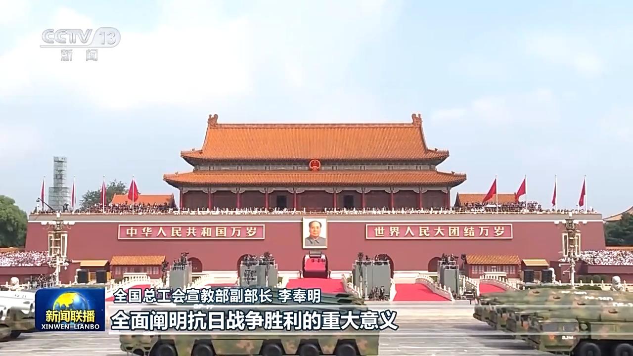 全國(guó)總工會(huì)宣教部副部長(zhǎng) 李奉明:習(xí)近平總書記的重要講話,從全民族、全人類的高度,全面闡明抗日戰(zhàn)爭(zhēng)勝利的重大意義。莊嚴(yán)宣示中國(guó)人民維護(hù)世界和平與發(fā)展的堅(jiān)定立場(chǎng),我們深刻認(rèn)識(shí)到中國(guó)共產(chǎn)黨的中流砥柱作用是抗日戰(zhàn)爭(zhēng)勝利的關(guān)鍵。