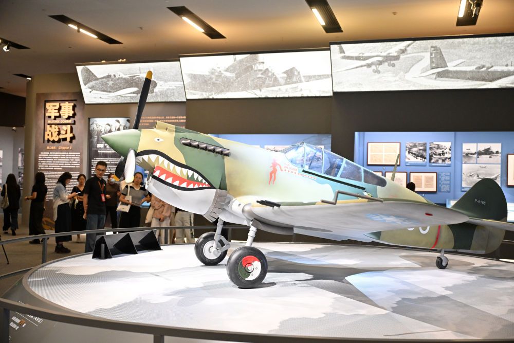 這是在中國國家博物館展出的"飛虎隊"P-40戰(zhàn)斗機(jī)模型(9月7日攝)。新華社記者 金良快 攝