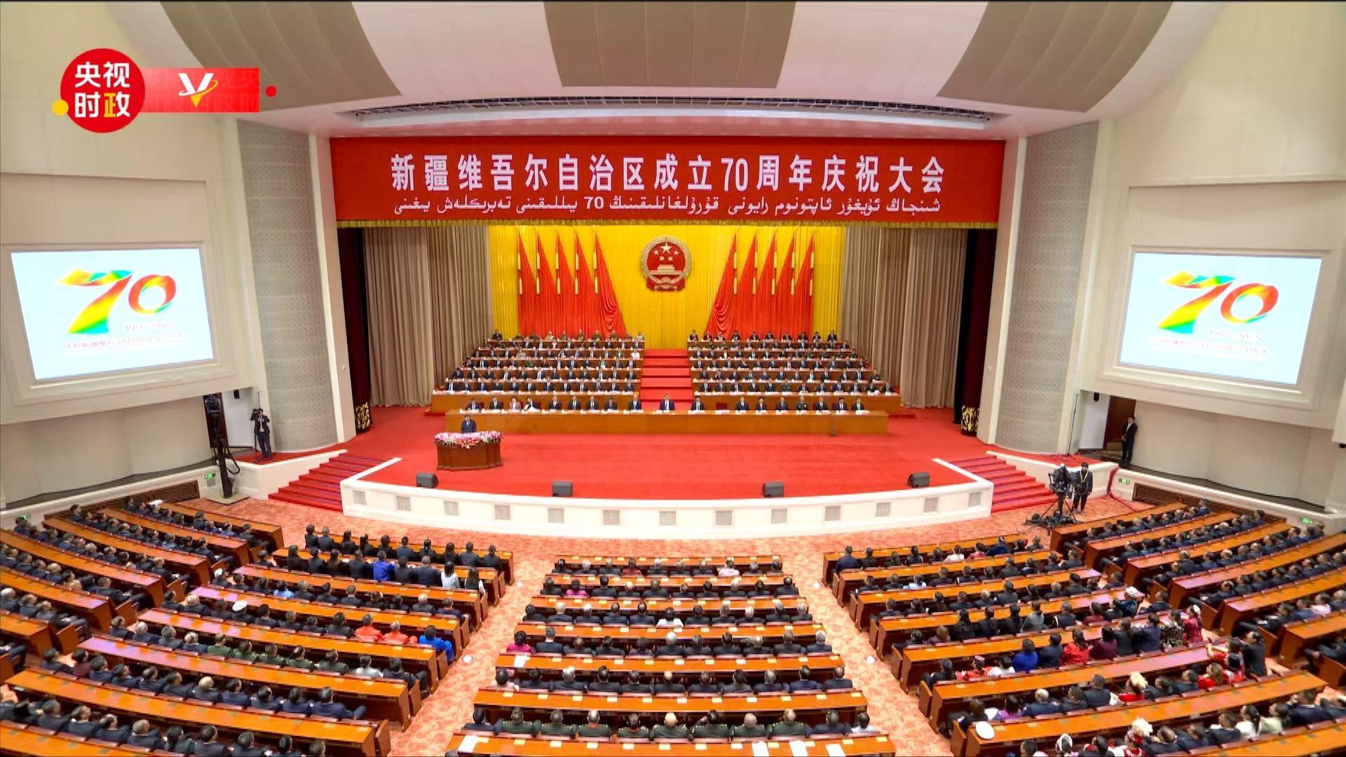 25日上午,新疆維吾爾自治區(qū)成立70周年慶祝大會(huì)在新疆人民會(huì)堂隆重舉行。中共中央總書記、國家主席、中央軍委主席習(xí)近平出席慶祝大會(huì)。
