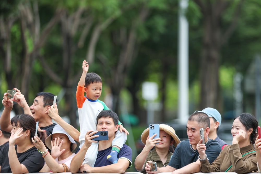 ↑ 觀眾在觀看火炬?zhèn)鬟f活動(dòng)。新華社記者 黃偉 攝