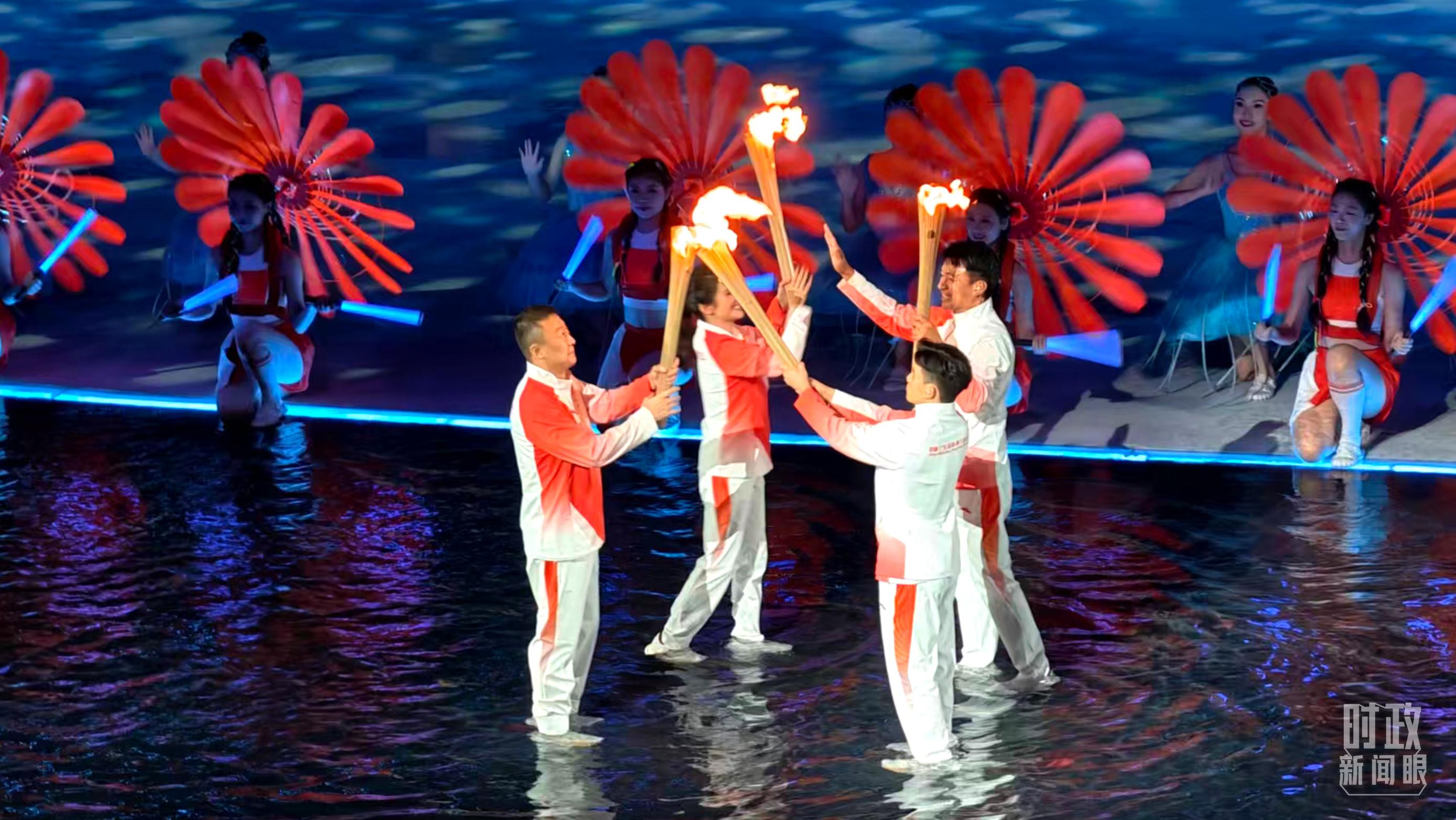 △第十五屆全運(yùn)會(huì)主火炬點(diǎn)燃環(huán)節(jié)。(總臺(tái)央視記者范一鳴、蔣碩拍攝)